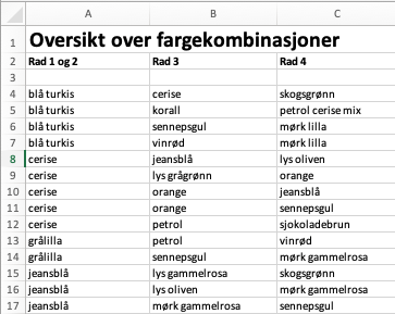 Og en bonusutfordring – det er ett fargepar som ikke får lov til å stå ved siden av hverandre, fordi fargene er for nær hverandre.