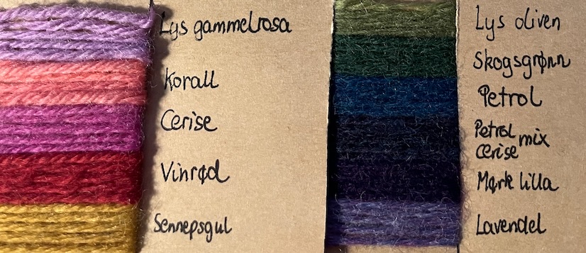 Så her kommer en utfordring til den som er god i matematikk: Hva er det minste antall ulike garnfarger jeg trenger hvis jeg skal lage et teppe på 20x 12 lapper, og alle skal være ulike? Hver lapp inneholder 3 farger + bunnfargen, og rekkefølgen av fargene har betydning.